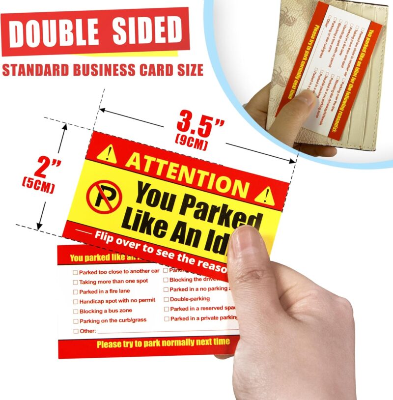 - Humorous Parking Violation Cards – Designed to address poor parking with a clear and funny message: “You Parked Like an Idiot.”