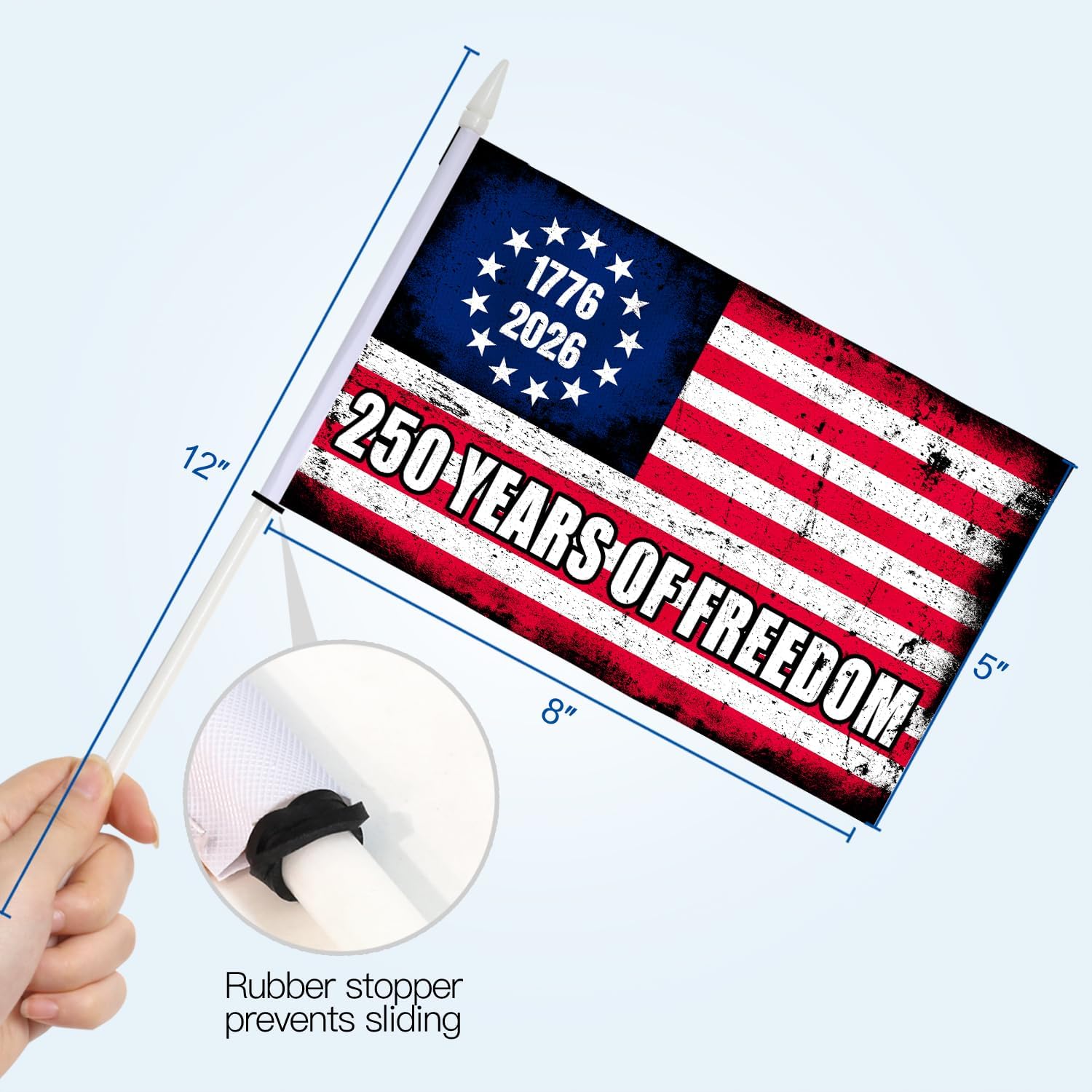 250th Anniversary American Stick Flags 5×8 Inch (Pack of 12)